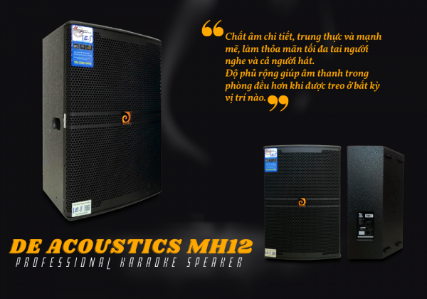 Loa DE Acoustics MH12 được đánh giá là dòng loa hát karaoke có độ bền cực cao. So với các dòng trước đây, MH12 tăng thêm 20% độ bền và độ lớn của gain.