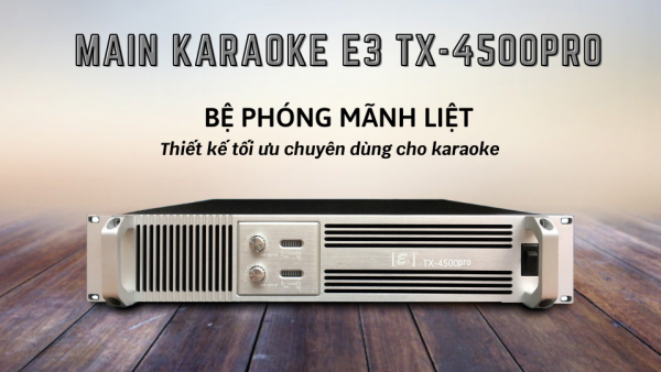 Thiết kế gồm 4 kênh riêng biệt, main karaoke E3 TX-12000 sở hữu mức công suất 1000W x 4 kênh (8Ω Stereo), 1600W x 4 kênh (4Ω Stereo) và 3200W x 2 kênh (8Ω Brigde) cho khả năng khuếch đại âm thanh ra loa cực kỳ ấn tượng. Âm trầm sâu chắc, âm trung chân thực cùng âm cao sáng rõ, giúp giọng hát sống động.