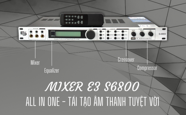 Tính năng điều chỉnh echo và reverb của mixer E3 S6800 độc lập với khả năng đáp ứng tần số dài và độ méo thấp. Bên cạnh đó, chip xử lý dữ liệu DSP 32 bit giúp cho S6800 có thể dễ dàng hơn trong việc thể hiện tất cả các dải âm thanh.