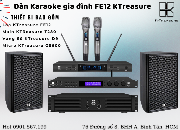 Dàn karaoke gia đình KTreasure FE12 sử dụng dòng loa FE12 đây là dòng loa chủ lực của nhà hãng KTreasure phát triển cho thị trường karaoke tại Việt Nam.