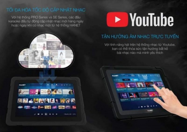 Ngoài dung lượng có sẵn từ ổ cứng được tích hợp trên thiết bị, đầu karaoke Hanet còn được hãng trang bị tính năng lưu trữ điện toán đám mây giúp mở rộng kho dữ liệu bài hát trực tuyến khổng lồ, giúp bạn có thể hát ngay những bản nhạc mới nhất trên thị trường và không giới hạn, luôn sẵn sàng hòa mình vào không gian giải trí tốt nhất. Ngoài ra, bạn còn có thể cập nhật bài hát mới dễ dàng về đầu hát thông qua kết nối internet.