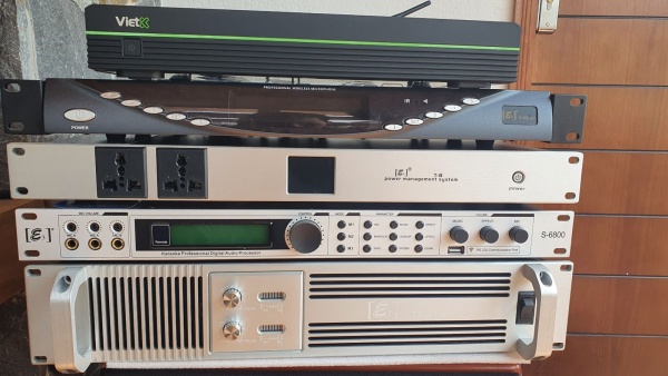 Các thiết bị khác trong dàn âm thanh như loa sub, đầu karaoke, màn hình chọn bài, quản lý nguồn điện được phối ghép lại để tạo nên 1 bộ dàn karaoke hoàn chỉnh