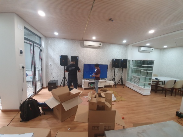 Hình ảnh trọn bộ dàn karaoke gia đình Vip được kĩ thuật viên MC2 Group chụp lại trong lúc lắp đặt tại nhà Chị Trang: