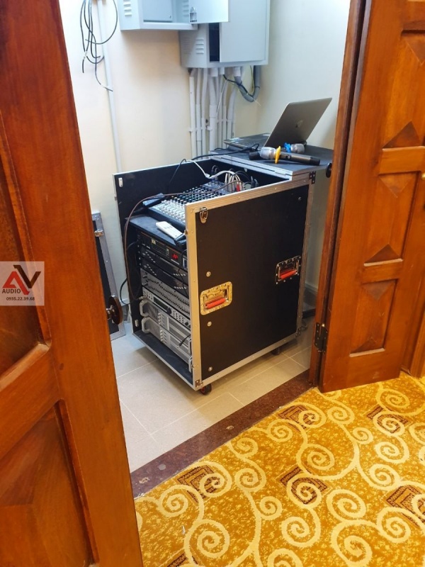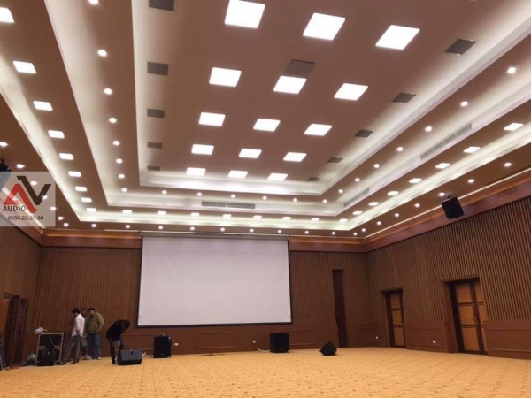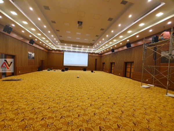 Hội trường được MC2 Group lắp đặt dòng loa full De Acoustics MH12 , đây là dòng loa ứng dụng cho các hoạt động karaoke phòng hát karaoke chất lượng cao , loa monitor kiểm âm , loa Biểu diễn phòng trà Hội họp ,loa thông báo... Loa với độ bền cao đem lại sự tin cậy cho người sử dụng. Bass nội lực,âm treble trong và tơi mịn nhưng vẫn không làm giảm hiệu suất và áp lực âm thanh là những đặc điểm mà MH12 được chọn để lắp đặt tại công trình này