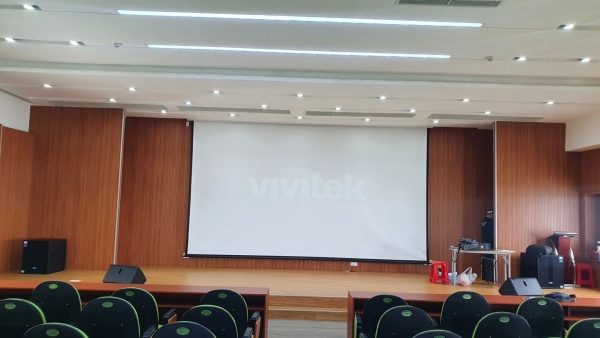 Không chỉ lắp đặt âm thanh, MC2 Group cũng thi công song song hệ thống máy chiếu cho phòng hội nghị với màn chiếu 300 incher và máy chiếu Vivitek có độ sáng 6000 Lumen tiêu chuẩn 4K