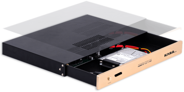 Bên trong đầu karaoke OKara M10i cũng được bố trí cực kỳ đơn giản và thoáng. Dễ dàng thấy được chỉ có 3 khu vực chính, trong đó quan trọng nhất là chiếc ổ cứng gắn trong với dung lượng hỗ trợ từ 3-6TB tùy theo nhu cầu lưu trữ của người dùng. Hãng cho biết là phần vỏ nhôm kết hợp với cách bố trí đơn giản bên trong giúp máy tản nhiệt được tốt hơn, không bị nóng trong thời gian dài.