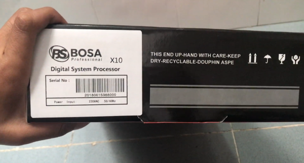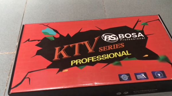 Mixer karaoke Bosa X10 được đóng gói gọn gàng, bên ngoài là thùng carton giấy được thiết kế nổi bật.Hộp sản phẩm được thiết kế màu đỏ đẹp mắt, được in phân loại sản phẩm KTV series, tên hãng Bosa và một số đặc điểm nổi bật của vang số X10.