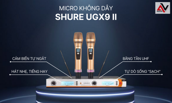 Shure UGX9II từng là phiên bản micro không dây hát hay gây làn sóng “trùy lùng” mạnh mẽ tại thị trường Việt Nam. Sản phẩm có mẫu mã sang trọng, khả năng thu phát sóng mạnh mẽ và ổn định, độ bắt âm cực nhạy, phạm vi hoạt động lên đến 50m mà không bị hụt tiếng hay bị nhiễu.